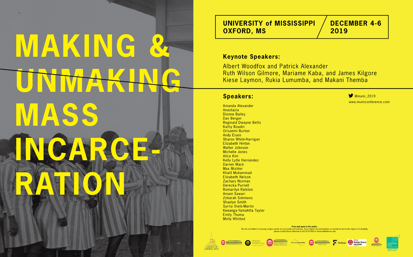 This week, I attended “Making and Unmaking Mass Incarceration: The History of Mass Incarceration and the Future of Prison Abolition,” a conference held at the University of Mississippi.
